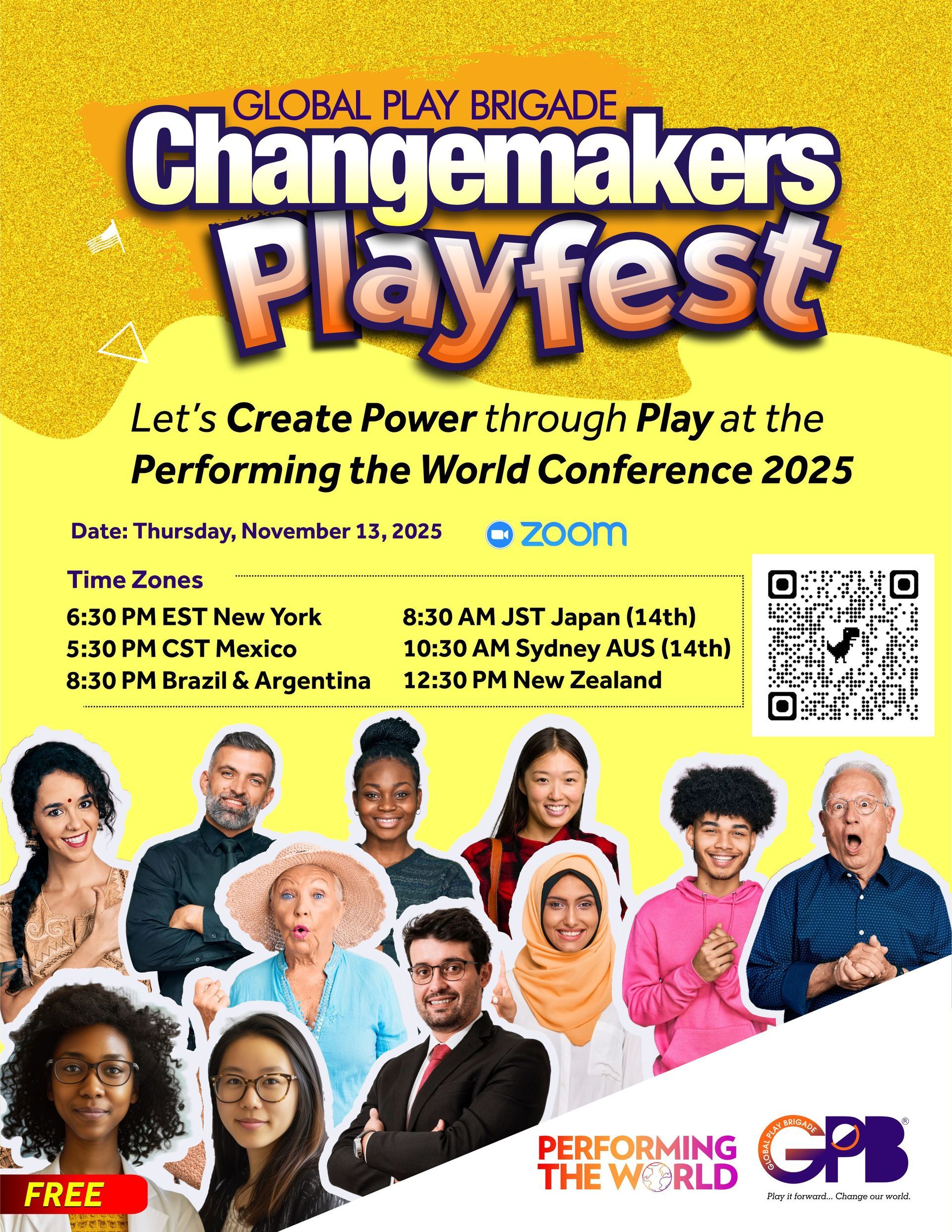 The Global Play Brigade (GPB) is bringing the Changemakers Play Festival to the global stage of the Performing the World Conference 2025 with the theme: “Meandering in the Mess: Creating and Organizing Power.”