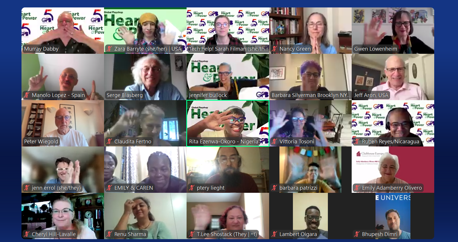 HEART & POWER: Bringing the World Closer to Wellness In a world where over 1 billion people are living with mental-health disorders and only one in five get the help they need, Global Play Brigadiers converged this past August at our Heart and Power Playshop to explore the question: How can we bring the world closer to wellness through play? Our carefully curated playshops included: In Embodied Empathy , people didn’t just talk about feelings; they moved them. One participant described the moment they felt another person’s sadness through a simple hand gesture, saying, “It was like my body understood before my mind did.” Guided by Christopher Ellinger (USA) and Jacek Kulkuk (Poland), the Zoom room softened. People softened. Empathy became physical. In What Is Wellness? , a big shift happened. Someone said, “I always thought wellness was personal, but now I see it’s something we build together.” With Lambert Oigara (Kenya), Jeff Gordon (Israel), Jenn Bullock (USA), and Muneeb ur Rehman (Pakistan), wellness became communal, a shared construction site where everyone created new tools. Imagine watching someone’s story turn into choreography; a literal dance of lived experience. Led by Ruben Reyes (Spain), Zara Barryte (USA), Sally Oimbo (Kenya), and Prudence Omale (Nigeria), Story-o-graphy gave participants a chance to see their stories move through another person’s body. It wasn’t just creative. It was healing. Rainbows of Emotions gave us the full colour spectrum of human feelings, from joy to grief to curiosity to frustration. It finally made sense that emotions aren’t good or bad… they’re information, one participant reflected. Steered by Ishita Sanyal (India), Manisita Khastagir (India), Rick Horner (USA), and Medhavi Parmar (India), people painted emotional rainbows with movement, sound, and imagination. Heart & Power didn’t end when Zoom closed. It ignited a new awareness that wellness isn’t a luxury, but a shared responsibility. People walked away with softer hearts, deeper breaths, and a renewed sense of connection across borders, cultures, and personal histories. It reminded us that play can be a global mental-health intervention. It can be one that honours the emotional, cultural, spiritual, and embodied realities. To every participant who danced, moved, cried, laughed, breathed, and played with us, we say THANK YOU. To our brilliant Playcilitators, thank you for guiding the world with courage and creativity. To our hosts, Rita Ezenwa-Okoro (Nigeria), Charly Ford (USA), Murray Dabby (USA), and Medhavi Parmar (India), your presence set the tone on both days. And to our indispensable tech team, you made HEART AND POWER come to life! Click to listen to the insightful musings on Heart & Power by Rita, our Executive Director! Click here to read the collaborative poem created by Heart & Power participants!